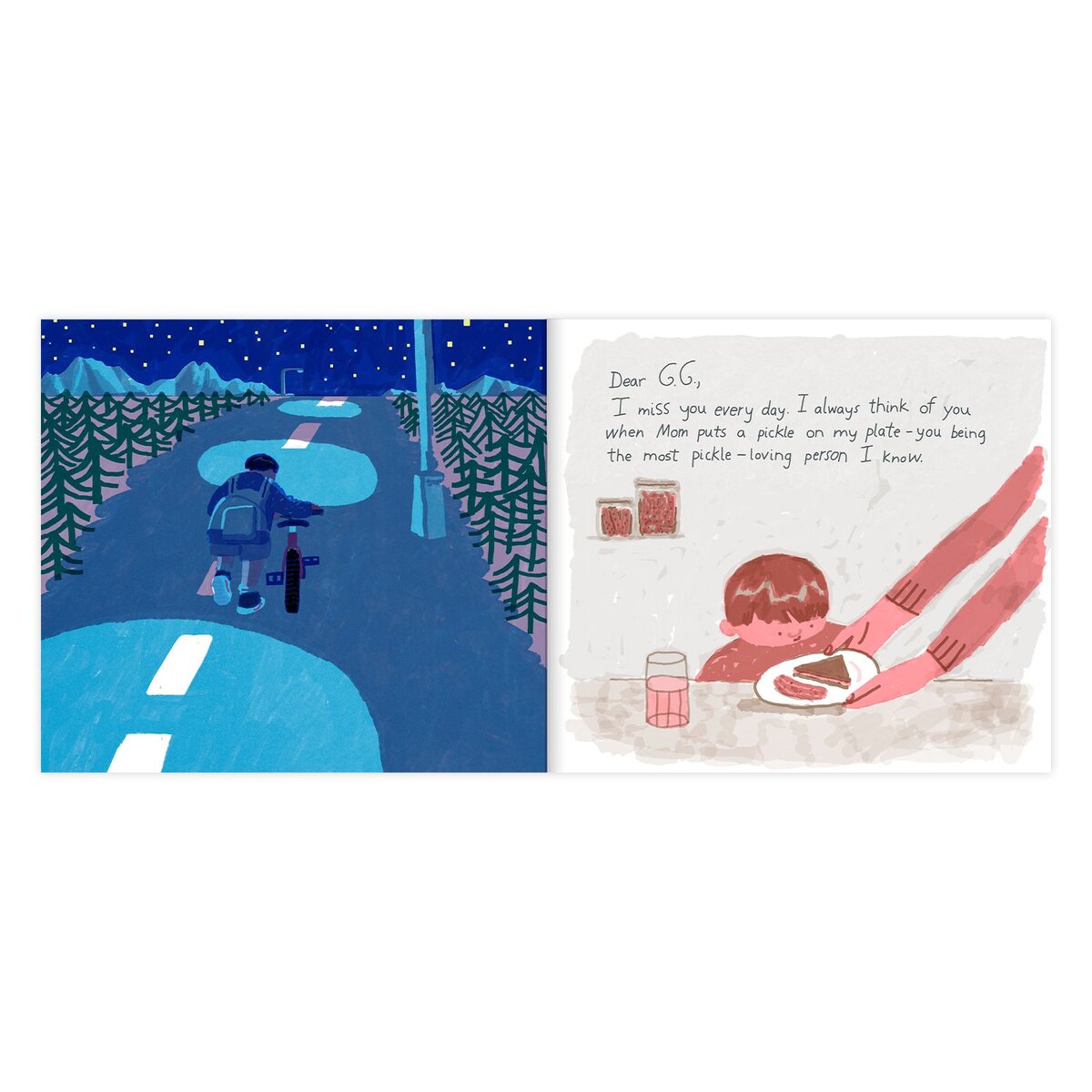 And what makes this letter so important? It's full of loving memories and shared moments, written specially by Sylvester for his beloved G.G. (Greatest Grandma). Even though G.G. is now gone, she's still Sylvester's favorite person--the most pickle-loving and fun person he knows. A picture book about how love and imagination connect us beyond death and keep the spirit of those who are no longer with us alive.