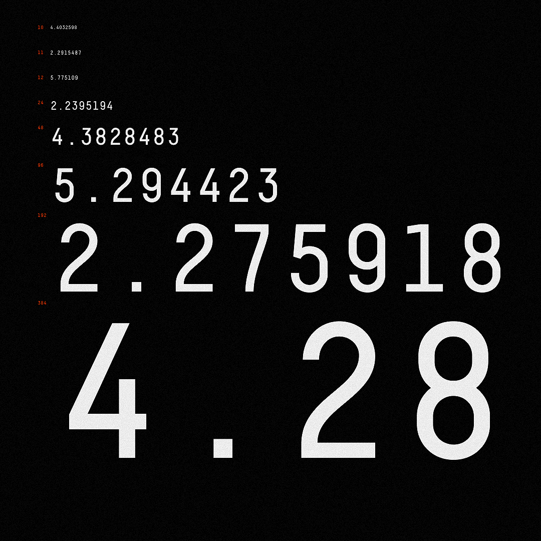 33 studies of Type as Texture using Decima Mono / 10pt, 11pt, 12pt, 24pt, 48pt, 96pt, 192pt, 384pt