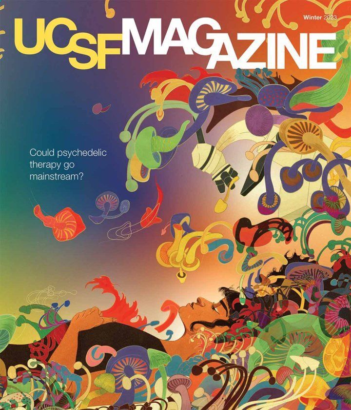Marcos Chin was commissioned create artwork for UC San Francisco Magazine to pair with a story about the use of psychedelics as medicine. Entitled Trip Therapy Could psychedelics become mainstream medicines?. The story speaks on recent clinical trials and testimonials from those who have benefited from the ancient hallucinogenic psilocybin.