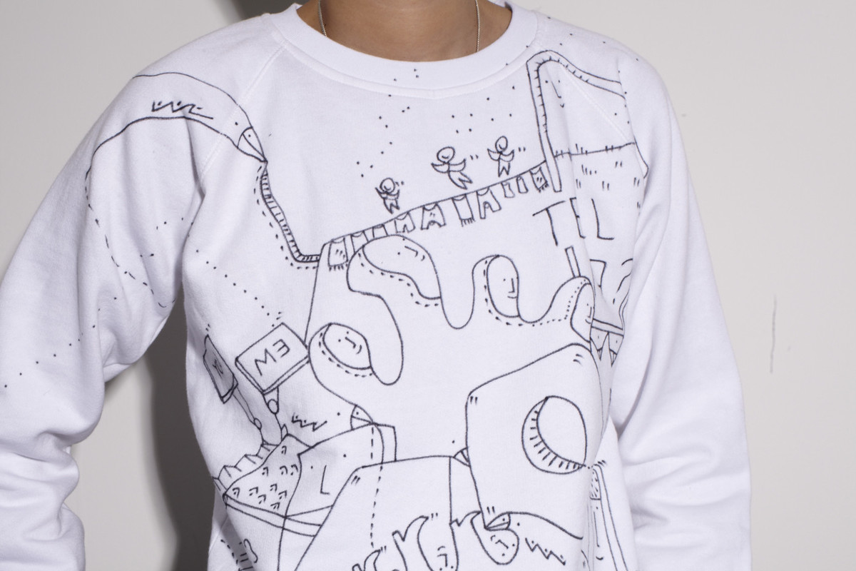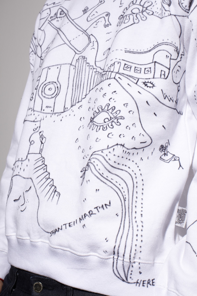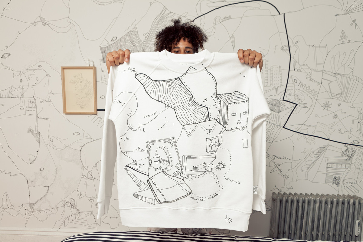 In 2012 Shantell Martin embarked on creating a collection of one-of-a-kind hand drawn sweaters, each unique and a piece of art individually or as a part of a collection. The owner of the piece would then have the choice to treat the piece as art and hang it and preserve it, or enjoy it and wear it out in the world. This continues to be a fundamental element in Shantell Martin's work, whether in art or fashion, bridging the gap of engagement between her art and her audience.