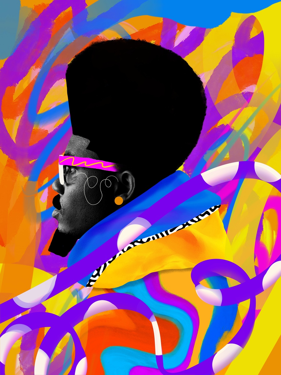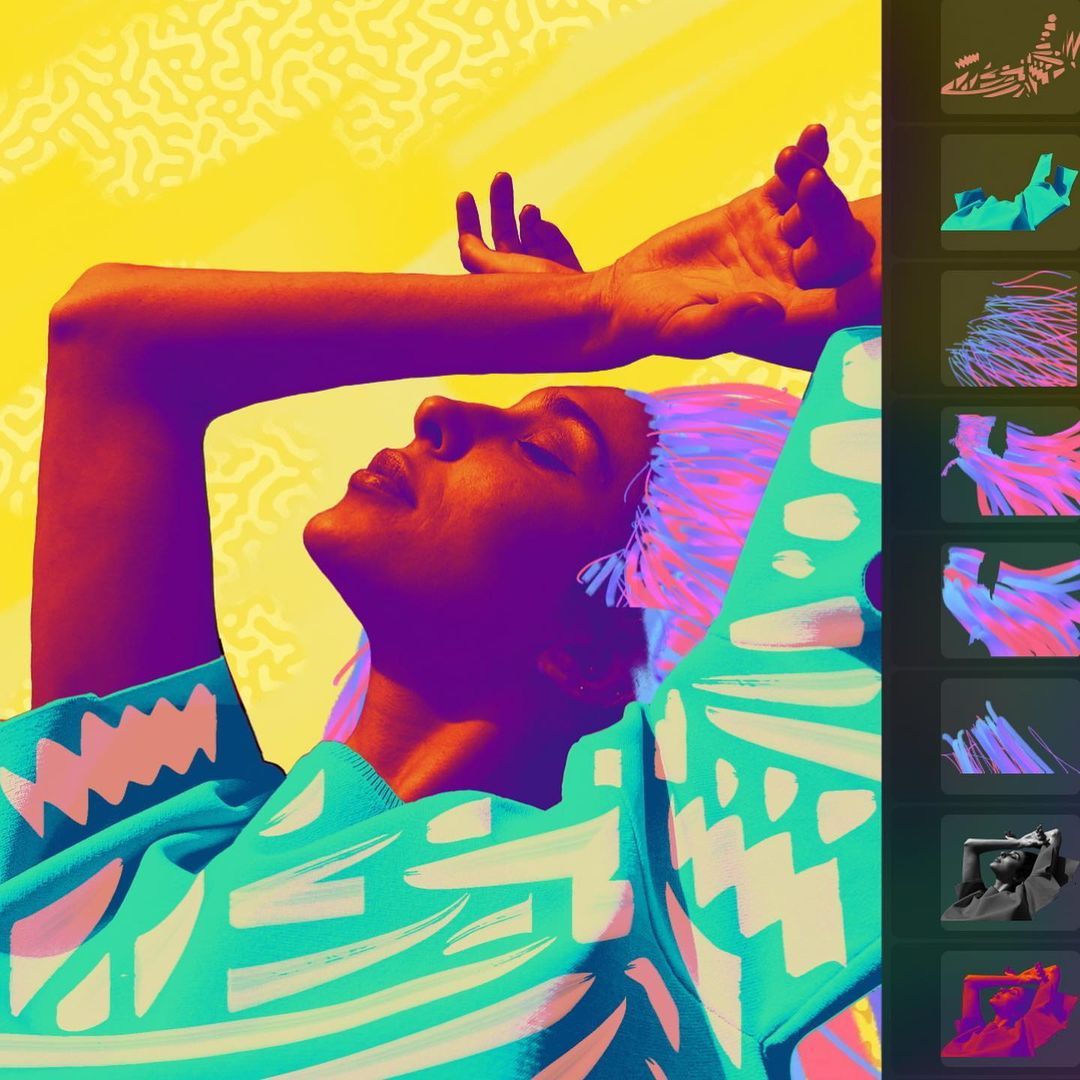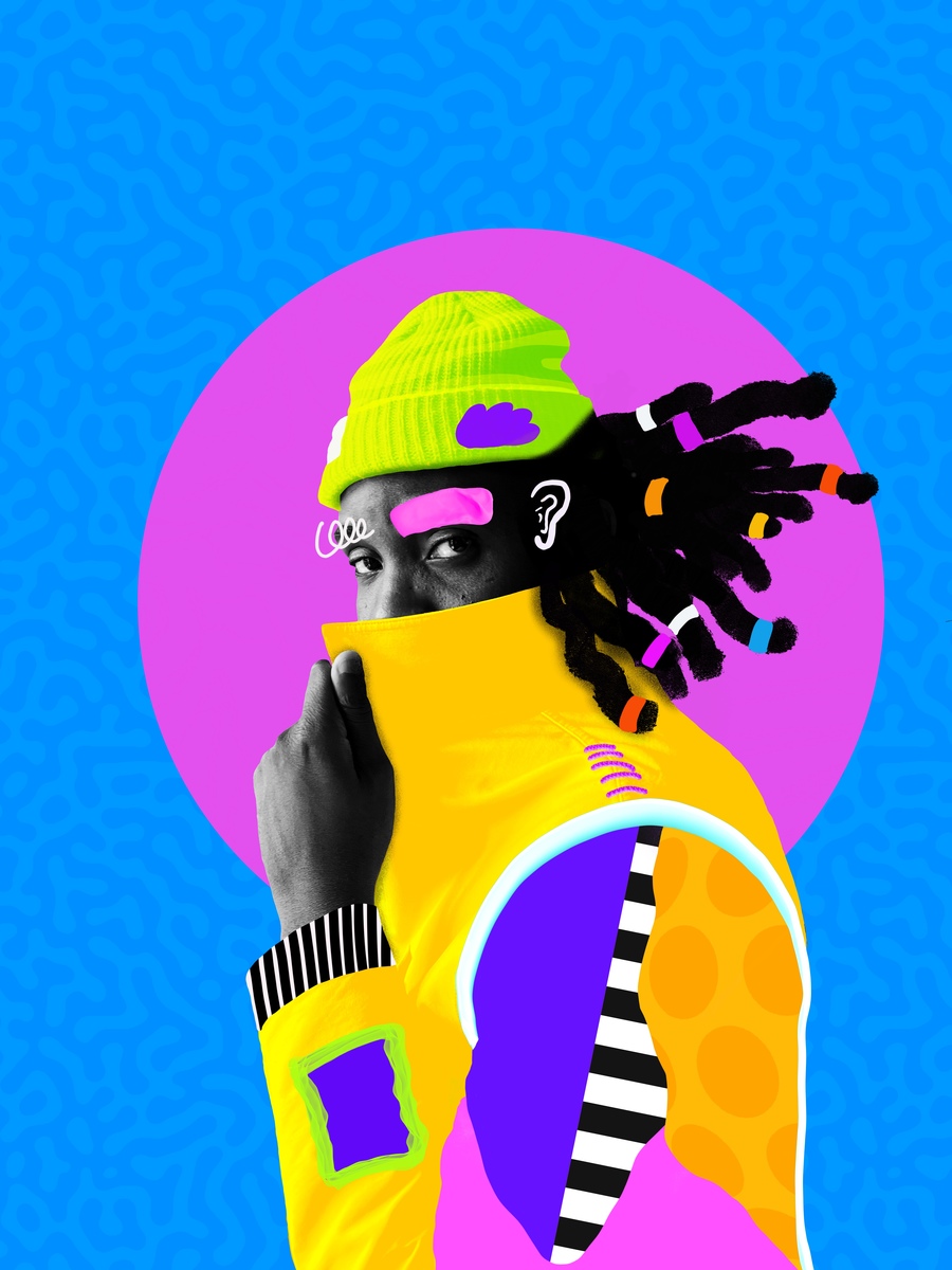 Temi teaches the audience how to bring their alter ego to life by applying colors and textures to photos on iPad. Viewers can take a page from his book and learn to transform characters with a Procreate brush pack and color palette inspired by his bold and expressive style.
