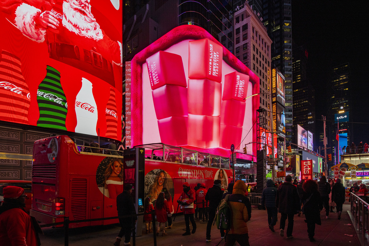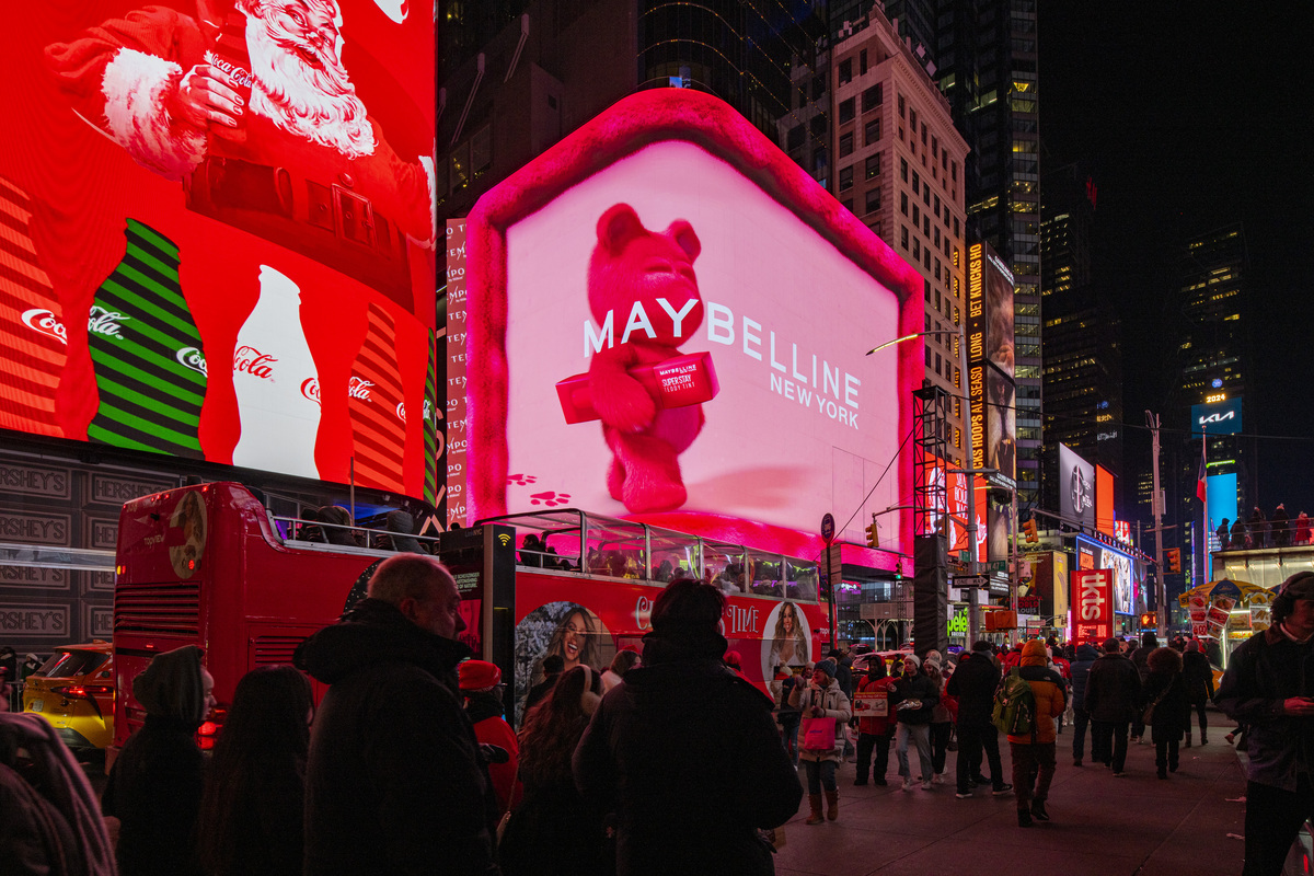 Woodblock created CGI for Maybelline's Teddy Tint OOH campaign, which ran on two digital billboards in Times Square during the holidays. Part of the campaign featured anamorphic elements, bringing the visuals to life with eye-popping effects in one of the world’s most iconic advertising spaces.