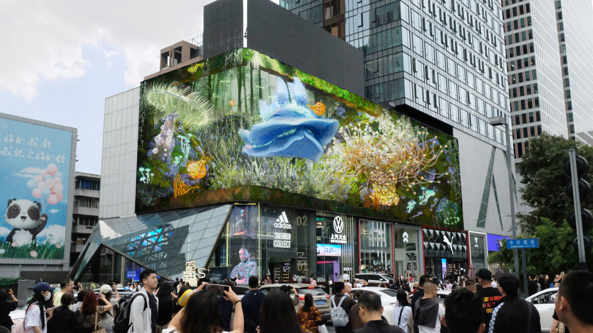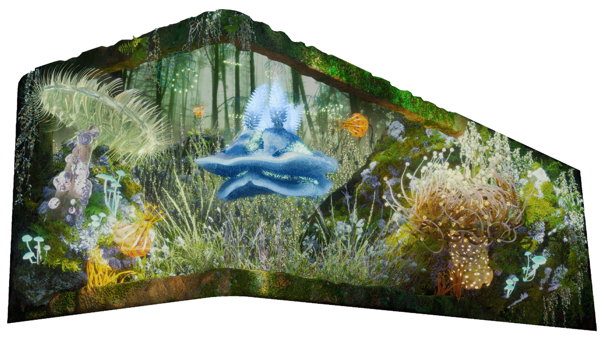 "Extreme of Emptiness" is a public art piece, designed by Zork Haiyu Zheng and collaboration with Flint Art. It is one of the branches of the series "Virtual Nature Study", aiming to express the narrative concept of "Void Pole Stillness" through digital art. The scene is set in spring and summer, in order to explore a wide variety of marvelous creatures in nature and use them as strong carriers to connect humans and nature. The work hopes to blur the boundaries between humans and nature in a poetic way, fading us outside of nature and becoming part of it. Poetically inhabiting the virtual nature, feeling the temperature of the sunlight, feeling the sound of the breeze, feeling the subtle changes of nature in a moment of breathing, feeling a "real sense of reality".